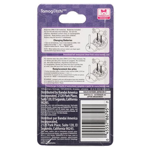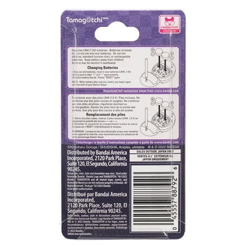 Raise your demon slayer and master different breath styles with the Giyutchi Demon Slayer Tamagotchi from the Hashira Gathering Version. Based on your training methods, you can raise your character into one of nine different Breath users. There are 3 training options to raise the strongest Breath User - Physical Training, Boulder Lifting, and Total Concentration. Japanese programming with a blue design. Feed your slayer either rice bowl or green tea and play three different games. If you neglect training, your Slayer will become injured. If you do not treat the injury yourself, Kakushi will come. Ages 6 and up. Includes 2x "LR44" batteries.