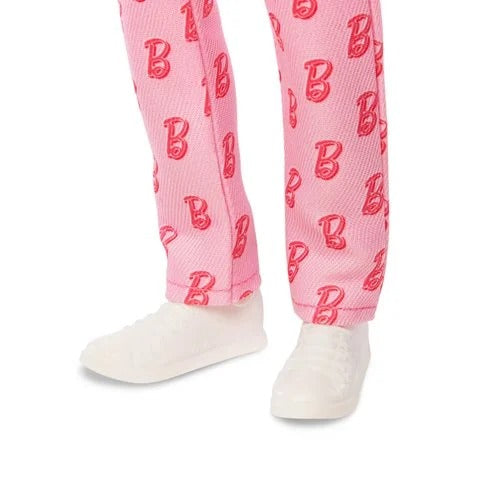 Greetings from Barbie Land! Modeled by Ryan Gosling’s Ken character in Barbie The Movie, this collectible Ken doll wears a pink jumpsuit with a Barbie "B" symbol throughout. Inspired by the scene where Ken joins Barbie on her adventure to the Real World, the Ken doll includes his iconic roller skates -- just in case he needs them -- while wearing his signature white sneakers! With his platinum blonde hair, he captures all of Ken's signature style! Celebrating Barbie The Movie, this Ken doll makes a great toy for fans and collectors alike. Doll stand included. Doll cannot stand alone. Ages 6-year-old end up