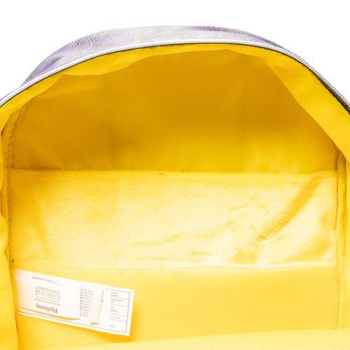 - Includes zipper closure, a front zippered pocket, adjustable straps, matching lining, an enamel zipper-pull charm, and shiny silver hardware.